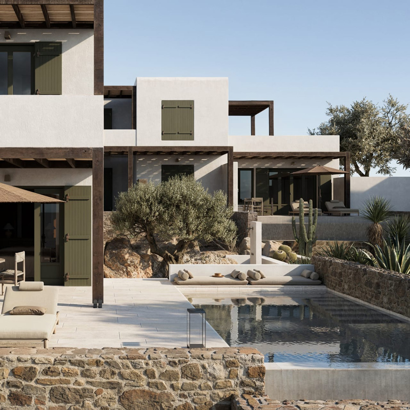 Just above Super Paradise Beach, Armacaas Mykonos offers a sanctuary of raw elegance and Cycladic poetry.