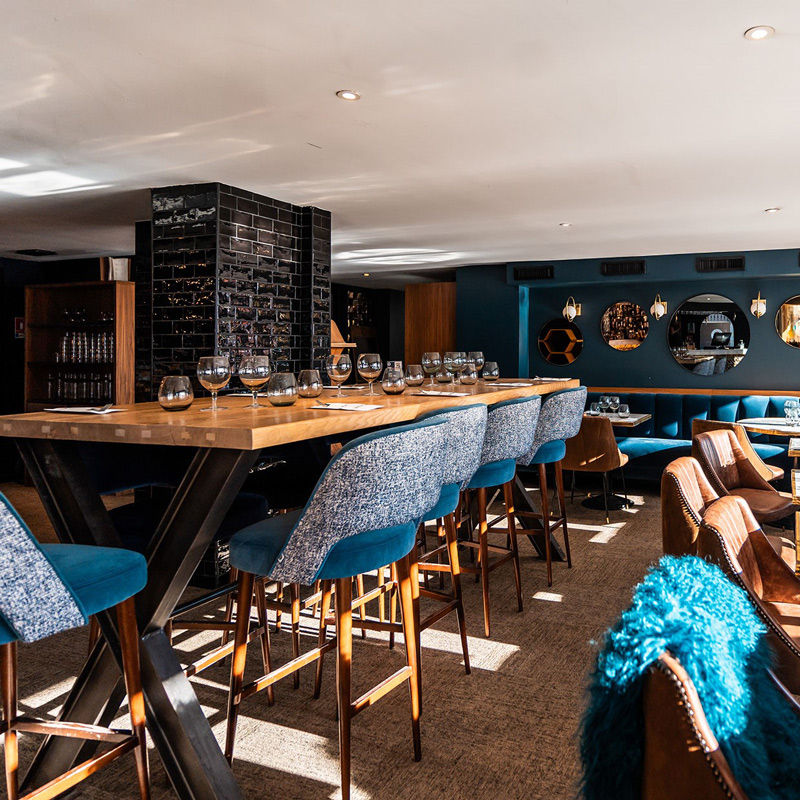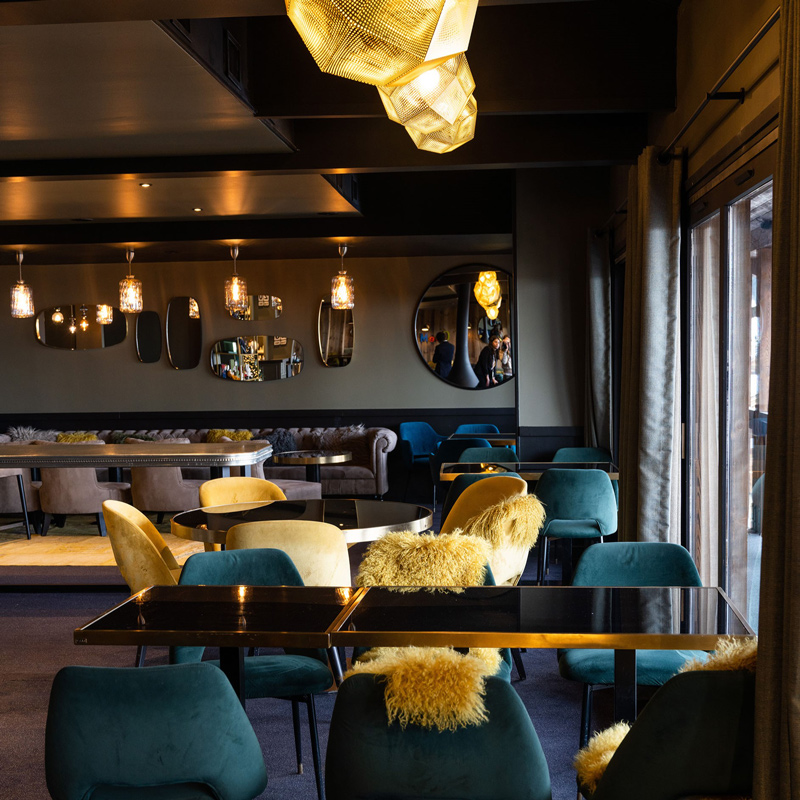 The hotel offers several dining areas. La Rôtisserie, a friendly brasserie, is located directly on the snow front. La Cheminée is a bistronomic restaurant nestled on the 3rd floor of the hotel. The Seven Kings, a festive bar with a selection of 100% British gins and beers.