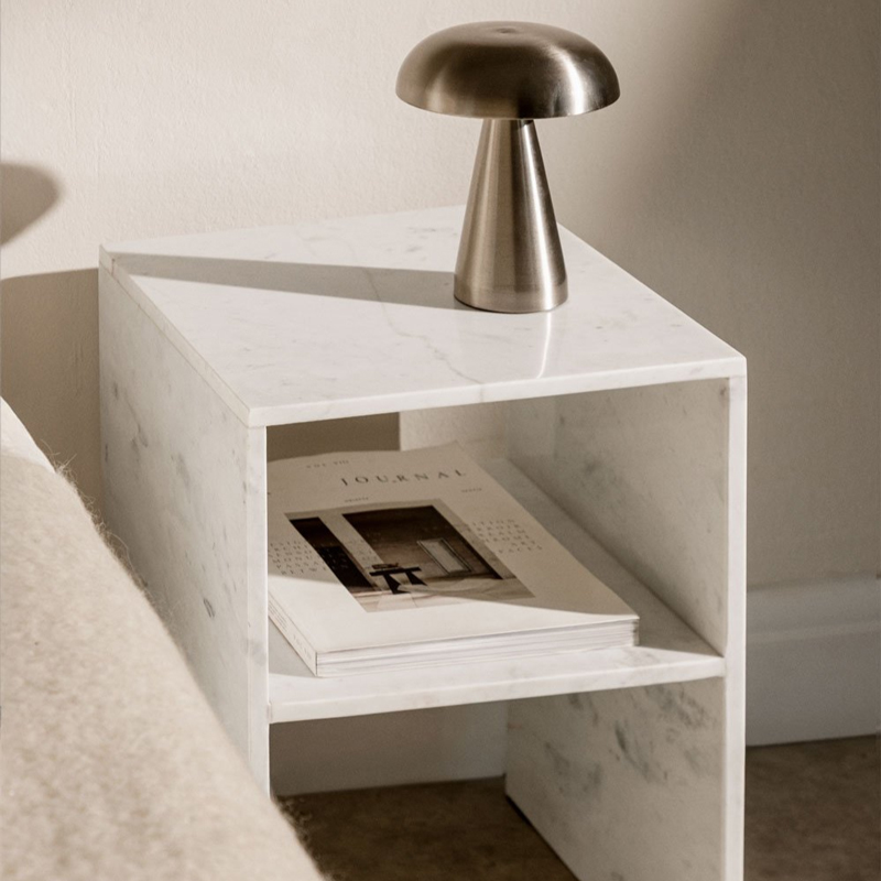 Marble and travertine instantly elevate a space, bringing solidity, refinement, and sophistication. Introduce these materials through furniture, such as marble or travertine bedside tables, which become sculptural pieces and add a luxurious visual signature to the bedroom.