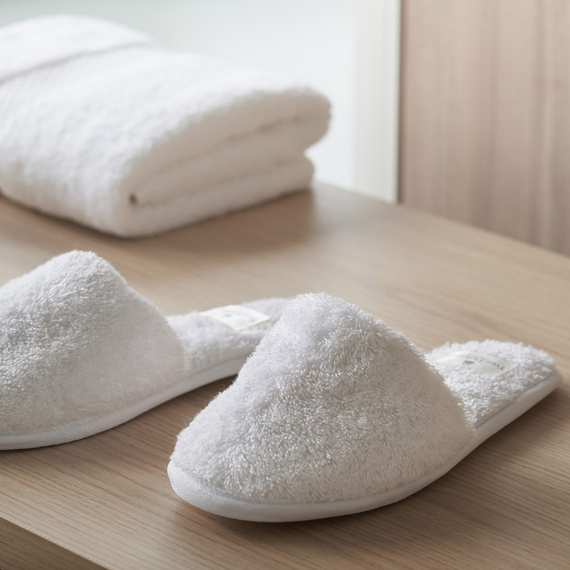 Often overlooked, the final touch of at-home luxury lies in slippers. Soft, comfortable, and elegant, they envelop the feet from the moment you wake and extend the refined hotel experience until the very last step before bedtime. Place them beside the bed, within easy reach, for a daily gesture that turns routine into a ritual of comfort and well-being. Chosen in noble materials such as Egyptian cotton, lightweight cashmere, or silky velvet, they add that discreet signature of luxury that distinguishes the most exclusive palace suites.