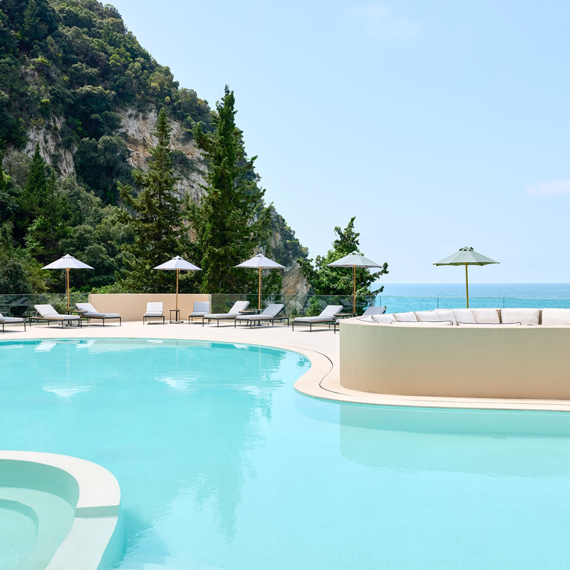Suspendu entre ciel et mer, l’Alkyna Lifestyle Beach Resort est un refuge raffiné sur l’île de Corfou, où le design contemporain rencontre l'art de vivre grec.