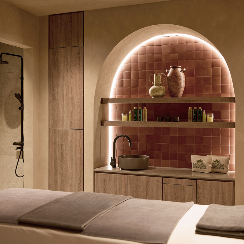 Le spa de l’hôtel propose une expérience bien-être personnalisée avec quatre salles de soins privées et un espace thermal complet comprenant un hammam aromathérapeutique conçu pour une relaxation profonde, une chambre froide offrant un contraste rafraîchissant, un sauna finlandais pour détoxifier et revitaliser le corps, une fontaine de glace pour éveiller les sens et une piscine intérieure de relaxation, véritable havre de paix. La philosophie bien-être est centrée sur l’équilibre et la vitalité, invitant les clients à se ressourcer tout en profitant d’une vue panoramique sur la mer Ionienne depuis une salle de sport ultramoderne entièrement équipée pour le cardio, la musculation et la souplesse. L’expérience est enrichie par deux piscines à débordement extérieur avec chaises longues et parasols, des séances matinales de yoga, des cours de stretching et de mobilité, ainsi que des retraites bien-être ponctuelles conçues pour améliorer le bien-être général.