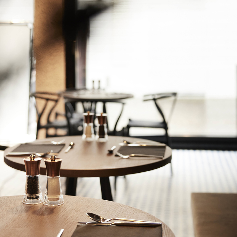 L’offre culinaire se vit au rythme du Viertel Bar, ouvert sur la ville et animé comme un salon urbain. Le sol en terrazzo vénitien incrusté de verre de Murano, les chaises design Hans J. Wegner et le comptoir sculptural signent un lieu où Bressanone se rencontre autour d’un café, d’un apéritif ou d’une assiette inspirée des saisons. L’expérience gastronomique s’annonce comme un voyage à travers les saveurs locales sublimées par une approche contemporaine, en écho à la philosophie de l’hôtel : conjuguer authenticité et modernité.