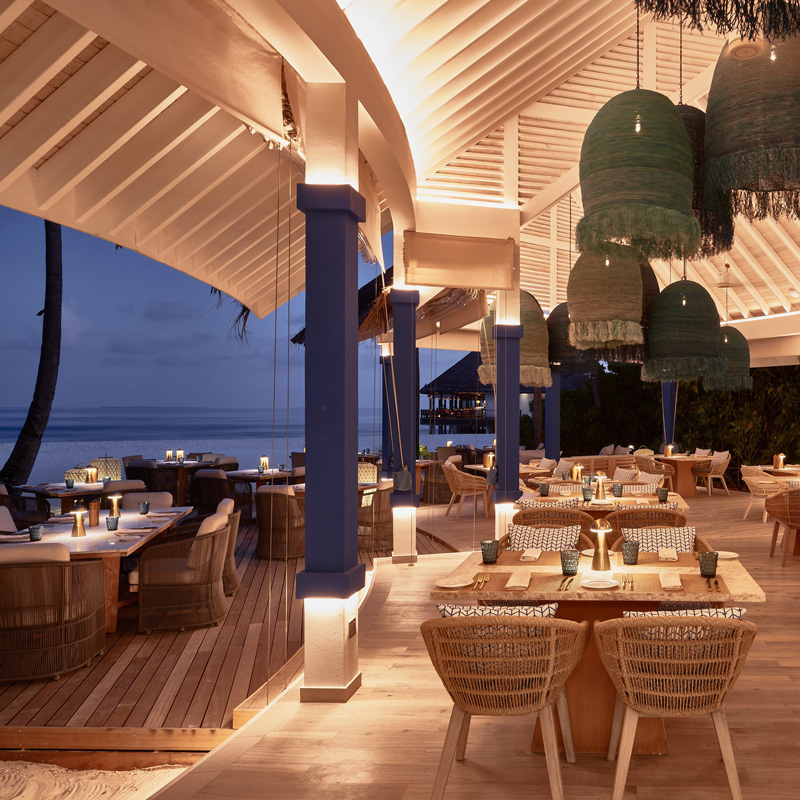 La gastronomie à Finolhu est un voyage sensoriel. Le Beach Kitchen mêle influences locales et internationales dans une ambiance conviviale, tandis que Kanusan, sur pilotis, propose une cuisine japonaise moderne et créative. Les saveurs épicées du Arabian Grill transportent les convives au Moyen-Orient et en Afrique du Nord, et le Crab Shack, pieds dans le sable, offre une expérience authentique face au coucher de soleil. Pour les pauses gourmandes ou les cafés rythmant la journée, Milk LAB et le Beach Club ajoutent une touche contemporaine et ludique à l’expérience culinaire.
