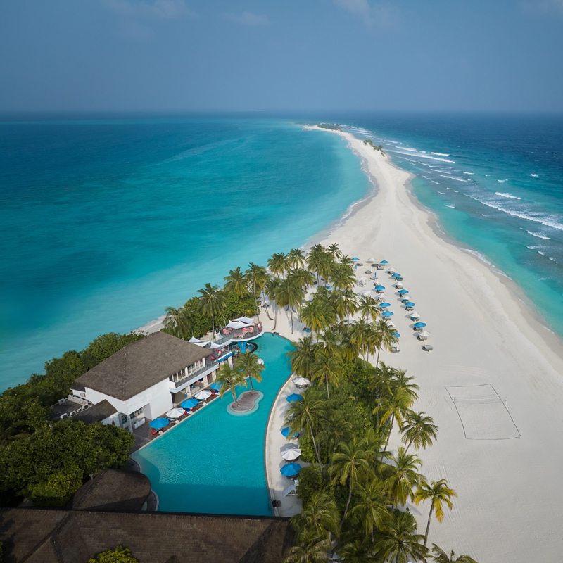 Ouvert en 2016, Finolhu est désormais reconnu comme l’un des resorts les plus stylés et innovants des Maldives. Son nom, signifiant littéralement « banc de sable », reflète l’esprit du lieu : une île à explorer, à vivre et à savourer. Propriété de Seaside Collection, groupe allemand réputé pour sa vision du luxe joyeux et inclusif, le resort conjugue raffinement et insouciance. Chaque journée sur cette « île-terrain de jeux » offre une expérience unique : snorkelling parmi les coraux, excursions pour nager avec les manta rays et whale sharks à Hanifaru Bay, ou simplement une promenade tranquille sur la plage en admirant le coucher du soleil.