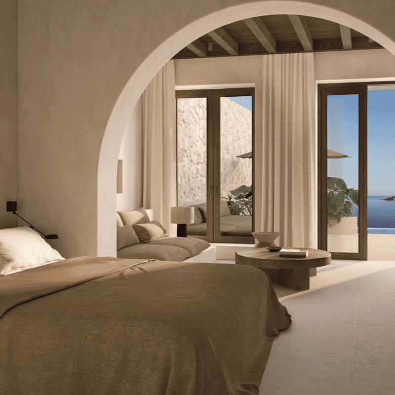 L’architecture de Luura Paros Cliff joue sur les contrastes doux entre lignes modernes et matériaux naturels. Les suites, baignées de lumière, s’ouvrent sur des vues spectaculaires grâce à de grandes baies vitrées. Les couleurs neutres et les textures naturelles créent une atmosphère chaleureuse et aérienne, tandis que des touches artistiques ponctuent l’espace, rappelant subtilement la culture locale. Chaque recoin est pensé pour prolonger la sensation de calme et de sophistication, faisant de l’hôtel un véritable écrin design en harmonie avec son environnement.