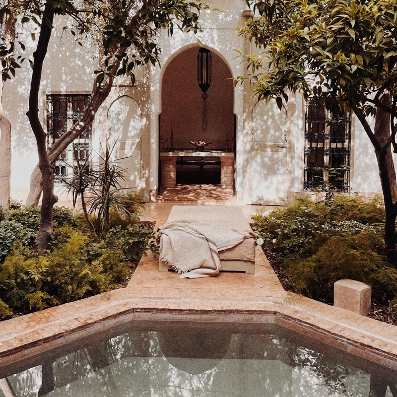 Le spa du riad offre une immersion dans les traditions ancestrales du bien-être marocain. Sous les voûtes en pierre du hammam, la vapeur aux effluves d’agrumes purifie le corps et l’esprit, préparant la peau à un gommage au savon noir suivi d’un massage aux huiles précieuses. Ces soins, inspirés des gestes berbères et des techniques marocaines, offrent un voyage intérieur où chaque sensation devient un instant de pure détente.