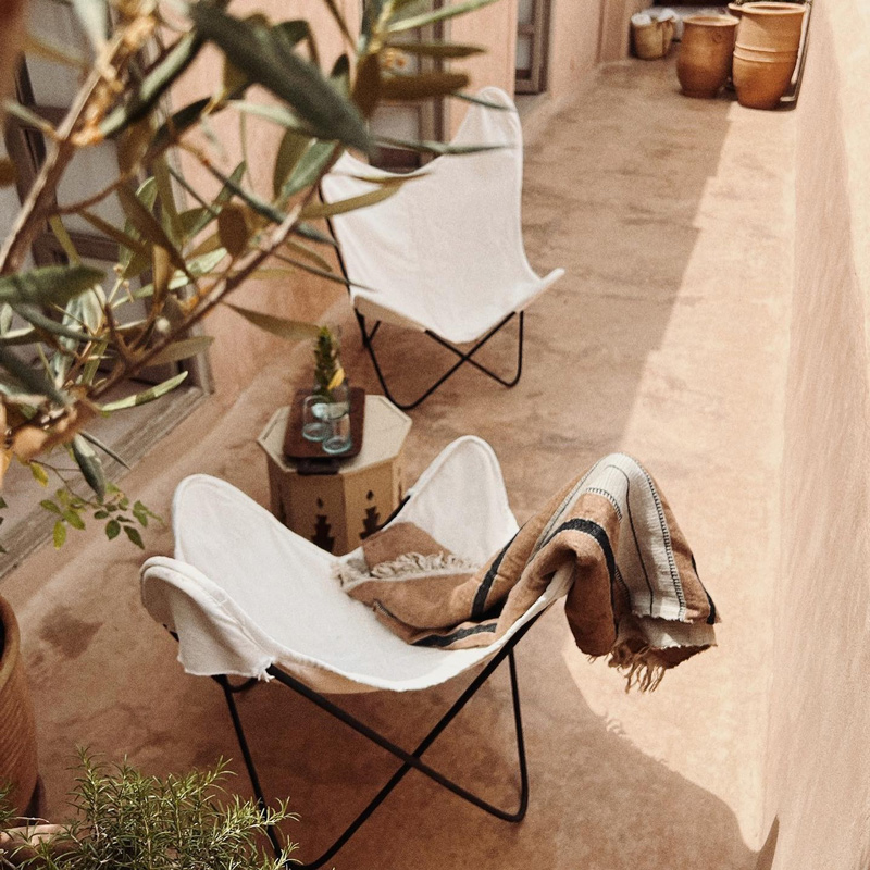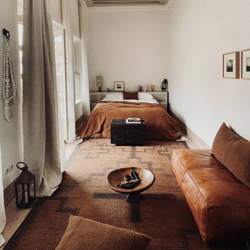 Derrière ce lieu d’exception, Sandrine Henry, architecte d’intérieur et co-fondatrice, insuffle sa sensibilité artistique et sa passion pour l’artisanat marocain. Inspirée par les couleurs de la vallée de l’Ourika, elle a orchestré une rencontre subtile entre tradition et modernité. Chaque objet, chiné lors de ses voyages ou conçu par des artisans locaux, tisse un dialogue entre les époques. Les tapis berbères, céramiques façonnées à la main et objets en cuivre martelé captent la lumière et racontent un Maroc pluriel et intemporel. Le riad devient ainsi un espace vivant où l’art et l’histoire dialoguent avec élégance. Une maison d’hôtes raffinée, alliant héritage marocain et design contemporain.